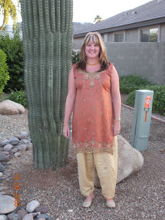 We are both keeping busy with work and household stuff. Here are some of our latest photos. A picture of our newest addition...an 18 foot saguaro cactus (only found in this part of AZ) and me all dressed up for work in my salwar kameez we got in India.